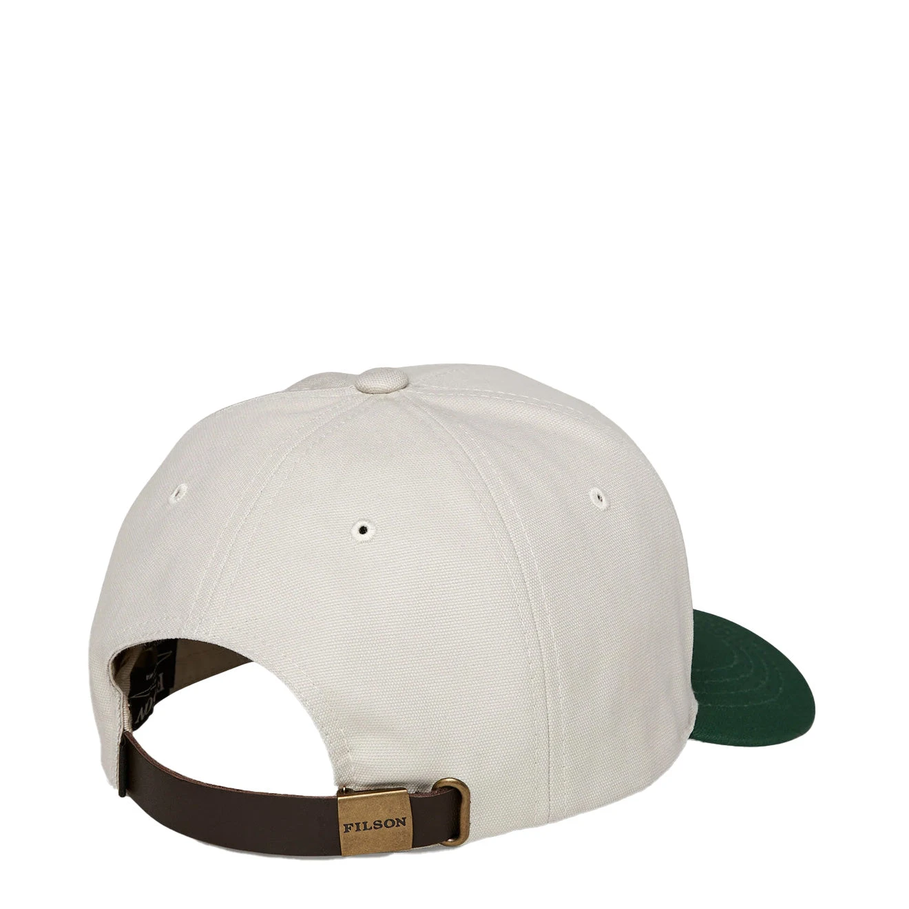 The ultimate six panel cap, the Filson Logger Cap is perfect for all seasons. Crafted from a stout cotton chino fabric, with a adjustable leather back strap and an custom brass buckle which is finished with embroidered grommets in crown for ventilation. Elevate your cap collection.