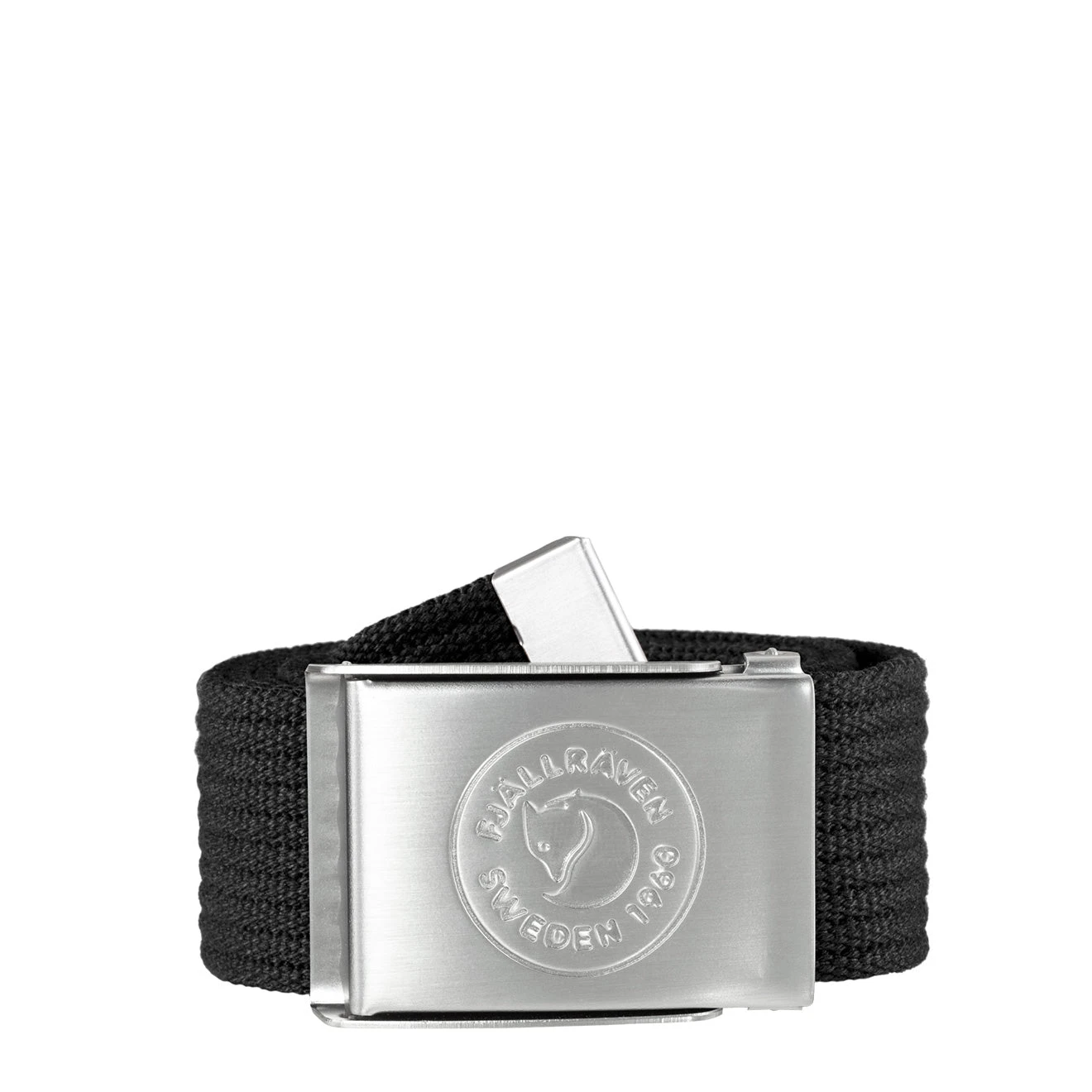 Fjallraven 1960 Logo Canvas Belt made from a recycled polyester. Which is easily shortened with the 1960 logo on the metal buckle.