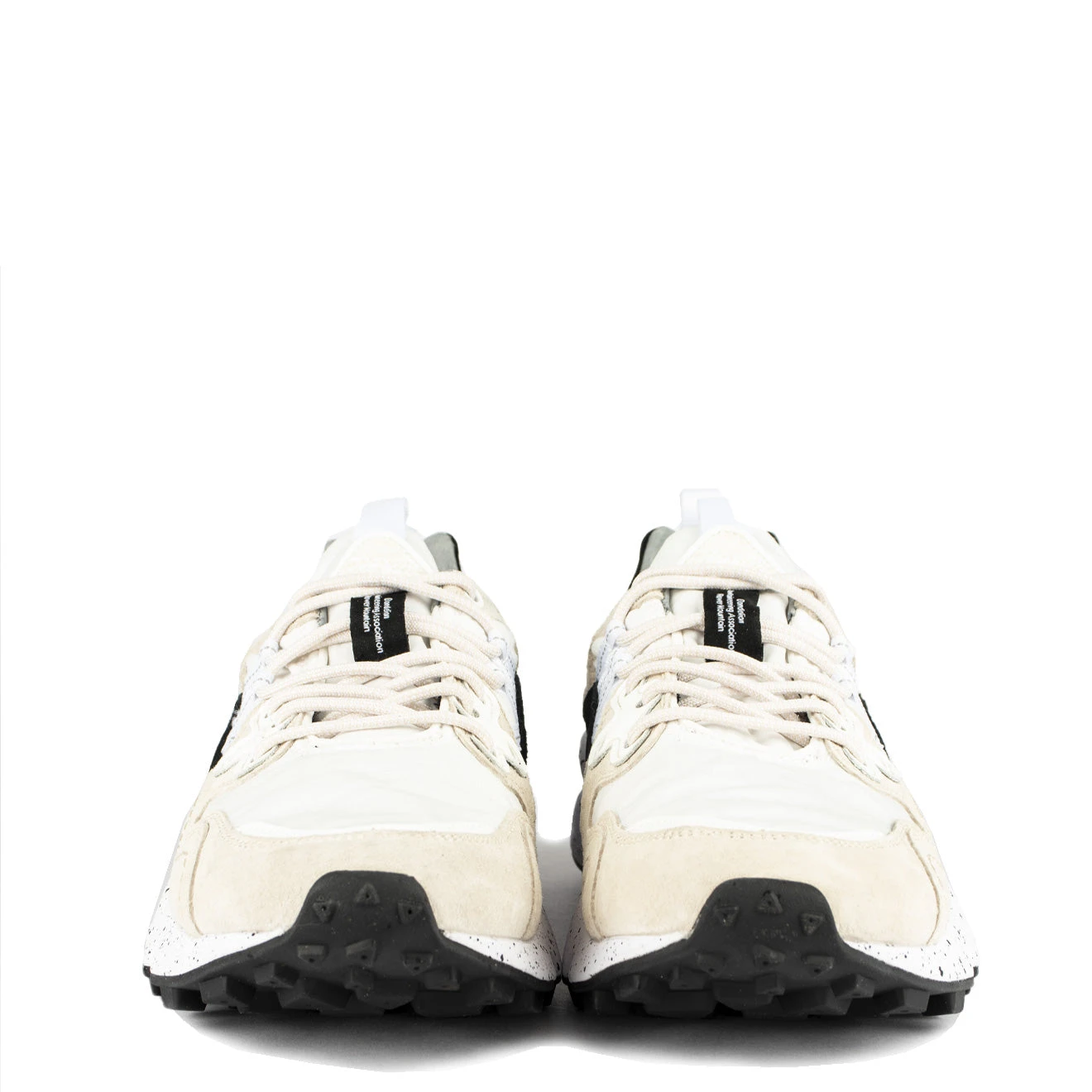The Flower Mountain Yamano 3 Man in Off White / Grey is a technical trainer, decorated with tonal colours and features reinforced lacing, and a natural cork insole.