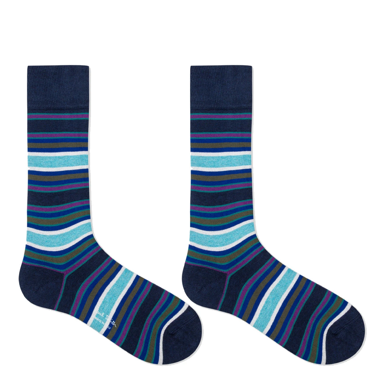 The Paul Smith Cotton-Blend Stripe Socks are crafted in Italy from a soft cotton blend, these navy socks feature a statement stripe design all-over. Complete with ribbed cuffs for a comfortable fit.