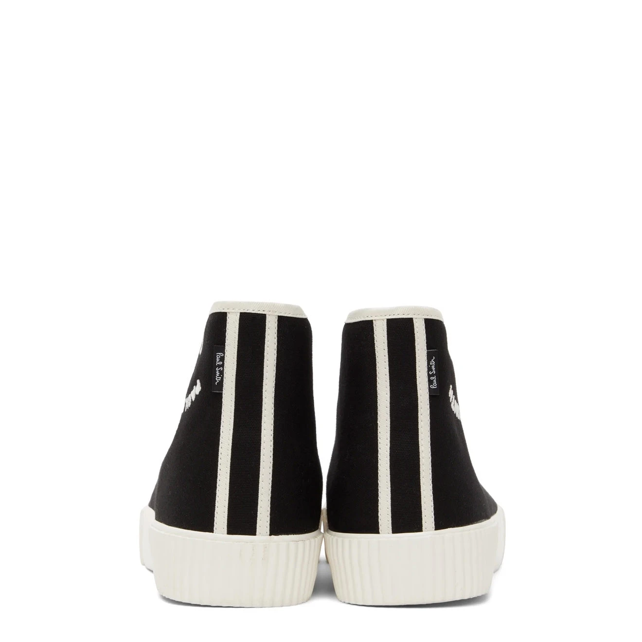 Made from 100% canvas uppers, these white ‘Kibby’ high-top trainers feature embroidered ‘Happy’ detailing on each side.