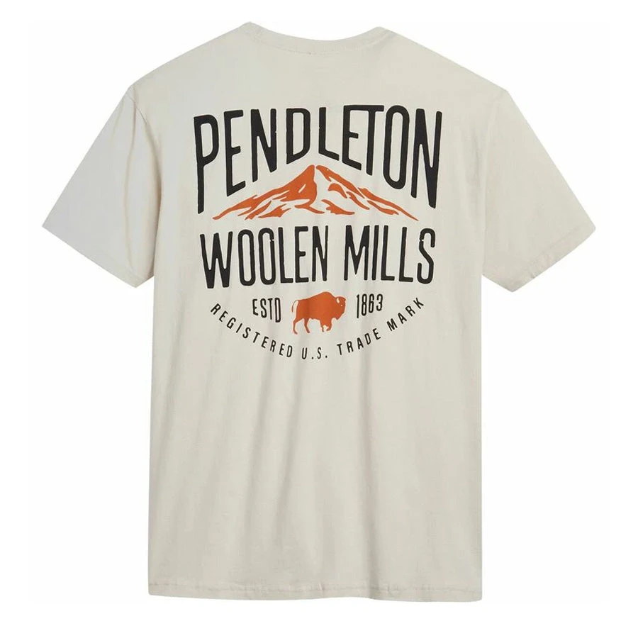Reminiscent of retro styles, the Pendleton Oversized Logo Graphic Tee is an elevated essential. Crafted from a soft, combed cotton with a large rear mountain and bison woollen mills graphic and finished with a small Pendleton logo on the front left chest.