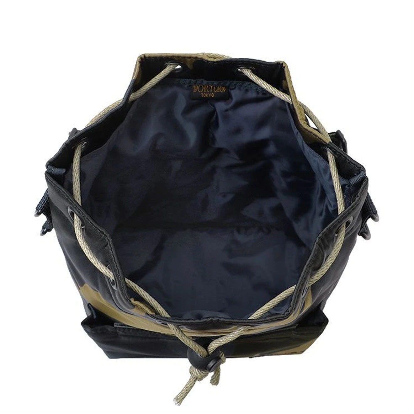 Porter-Yoshida and Co Balloon Sac Bag takes inspiration from drawstring bags, the main body can be opened and closed using the drawcord and the silhouette can also be changed. The bag comes with a removeable handle and shoulder strap for versatility.Â