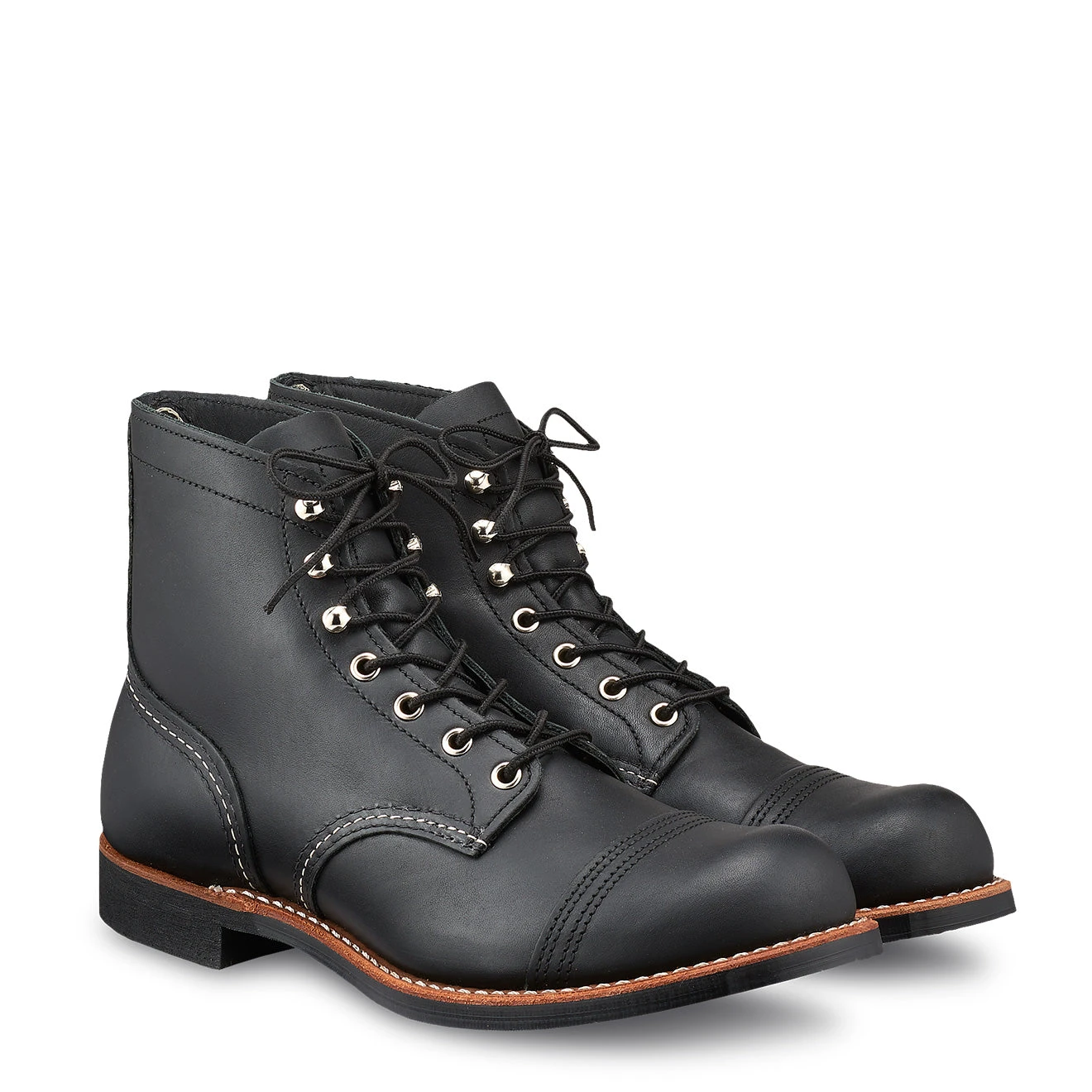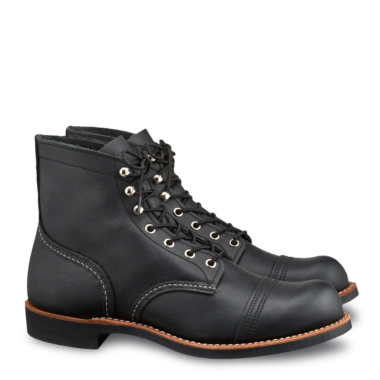 The Red Wing Iron Ranger Round Toe Stitch Boot combine style with protection. They offer a slim silhouette with a high ankle, a double layered toe for protection, sturdy stitch work, a four eyelet lacing system with an addition 3 hooks and a streamlined sole with small heel. The outsole has a strong grip, making these boots ideal for everyday wear as well as more challenging terrains.