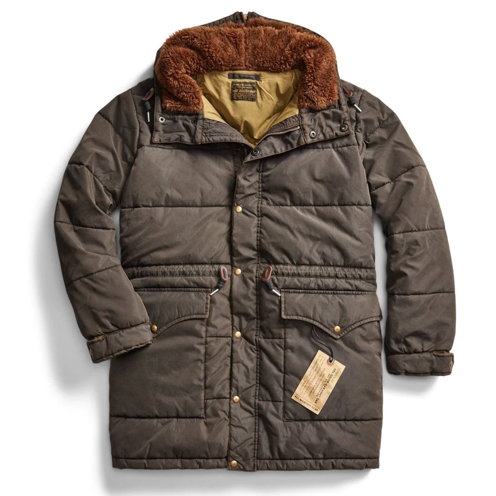 Reminiscent of mountaineering and expedition wear from the 60’s, this RRL by Ralph Lauren Coated Twill Parka is a must have. Crafted with a high pile fleece, with a fully lined and insulated down fill alternative, and leather stoppers. Heavily laundered for a timeworn look and feel.