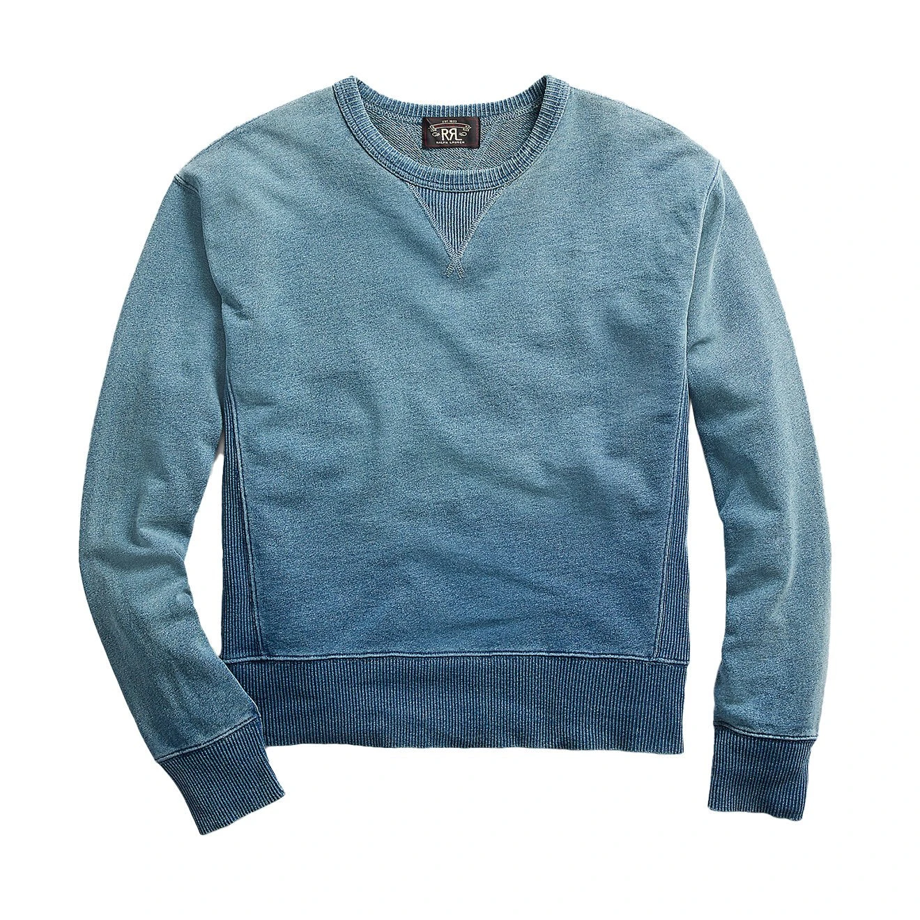 The RRL by Ralph Lauren L/S Double V Sweater in Washed Blue Indigo is made from cotton French terry and has been yarn-dyed with true indigo. Vintage-inspired vibes.