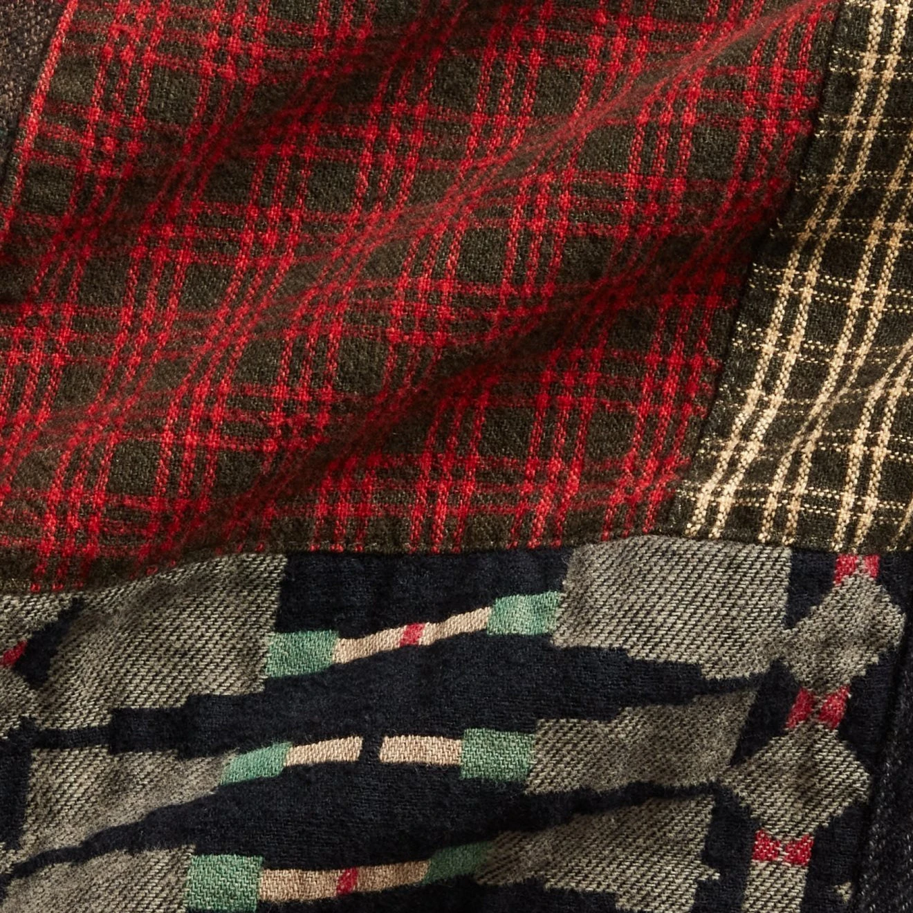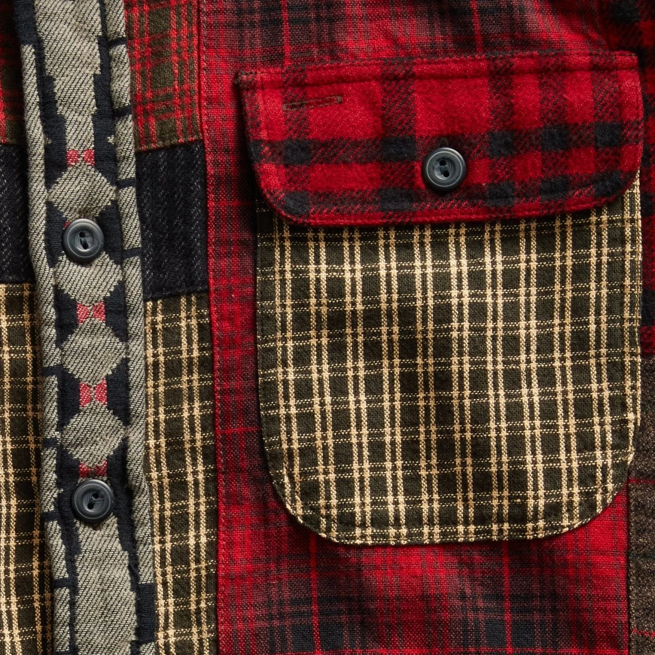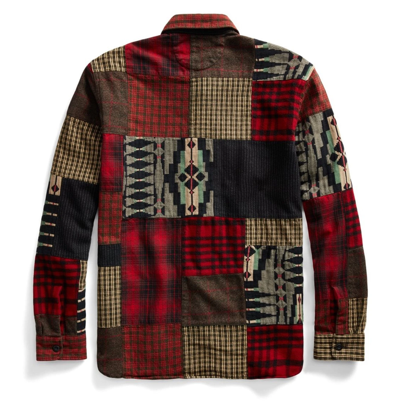 Bound to make a statement, the RRL by Ralph Lauren Patchwork Workshirt is an elevated take on an classic workshirt. Crafted with patchwork plaid, twill and jacquard fabrics, and decorative stitching on the seams. Reminiscent of styles from the early 20th century, this is a must have for your wardrobe.