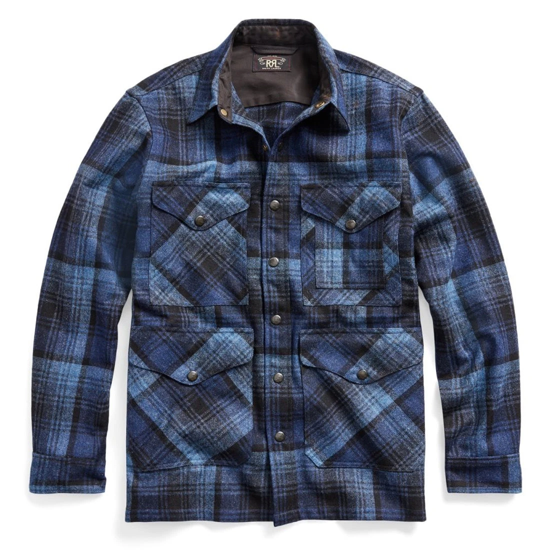 Add a touch of luxury to your wardrobe with the RRL by Ralph Lauren Plaid Wool Cotton Overshirt. Crafted from a plaid wool and cotton fabric which was woven by a storied English mill. Constructed with multiple pockets at the front, lower pockets on the side and a straight hem with twill reinforcements on the interior. Wear buttoned up, or throw over a t-shirt for a more casual look.