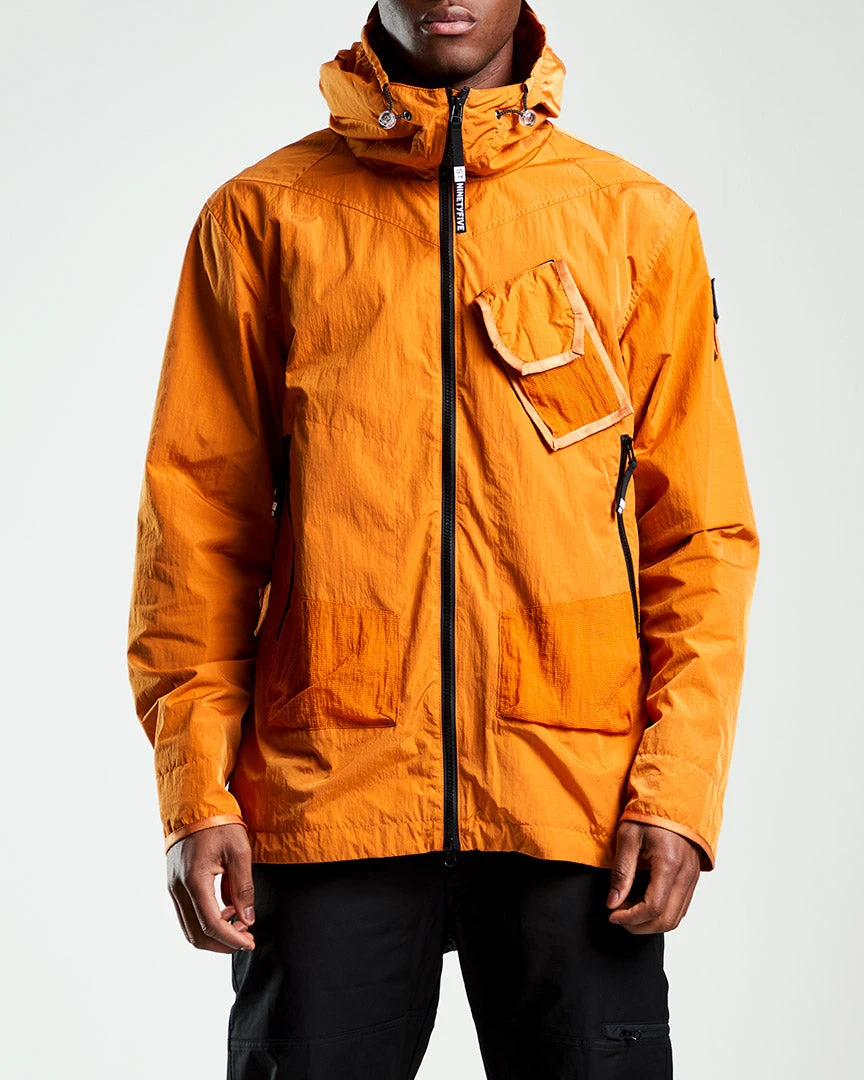 The Horizon Anorak from ST-95 is a relaxed fit and has been dyed in dual fabric to give tonal relief. Featuring signature shoulder, front and back webbing detail which incorporates a detachable branded patch to sleeve. It features a detachable front chest pocket and adjustable hood.