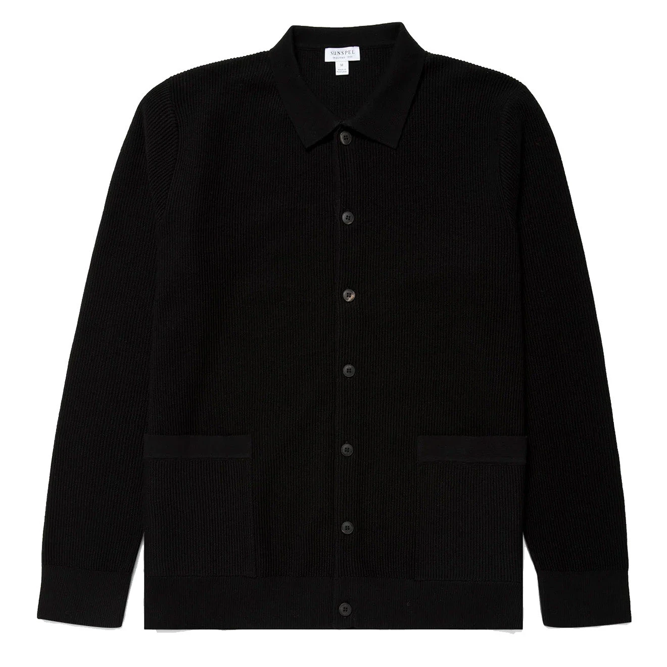 The Sunspel Knitted Jacket is an easy knitted jacket with a rib texture. The fine, long staple 100% Egyptian cotton is spun in Italy. Featuring, two front pockets, horn buttons, ribbed cuffs and hem.