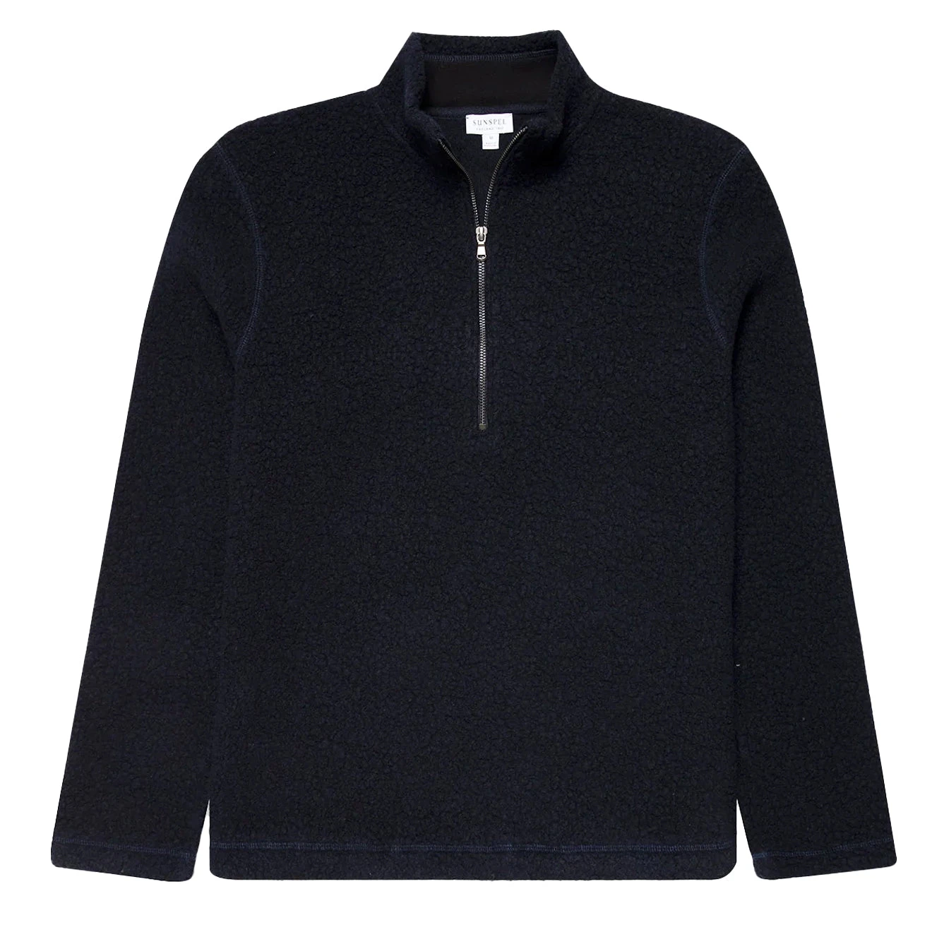 An elevated take on a classic half zip fleece, the Sunspel Wool Fleece Zip Neck will add a touch of luxury to any outfit. Crafted from an exceptionally soft Italian recycled wool which comes from both pre and post use fabric and then combined with polyester for extra durability. Constructed with a jersey lined inside collar, a YKK half zip and a YKK chest pocket with a zip fastening. An elevated essential.
