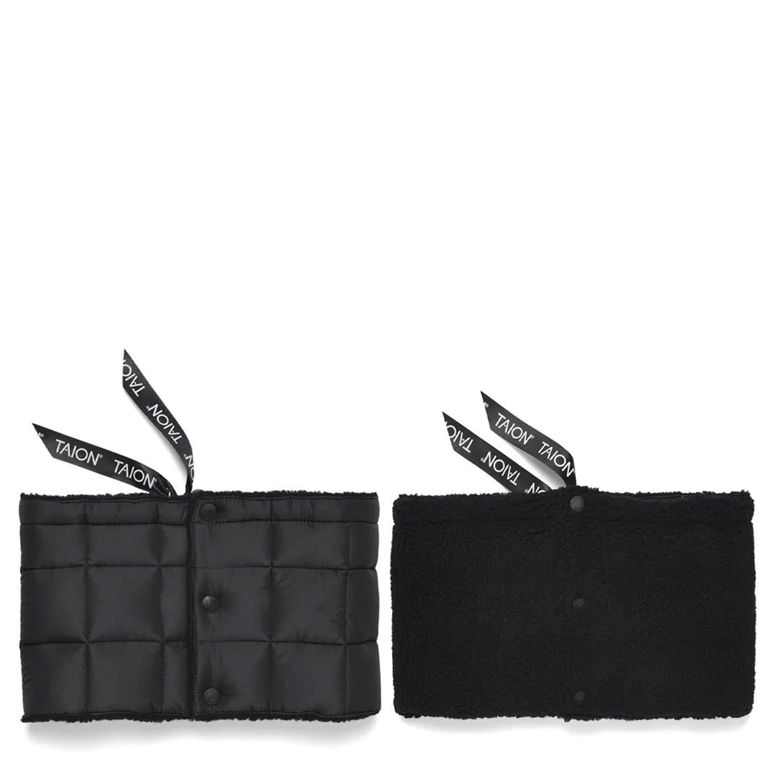 Stay super snug with the Taion Reversible Down Neck Warmer, an ultra versatile addition to your wardrobe. Crafted from a down fill quilted nylon, with a reversible black fleece, this is ideal for almost any occasion. Finished with a bungee style drawstring collar, and a press stud collar – a must have during the colder months.
