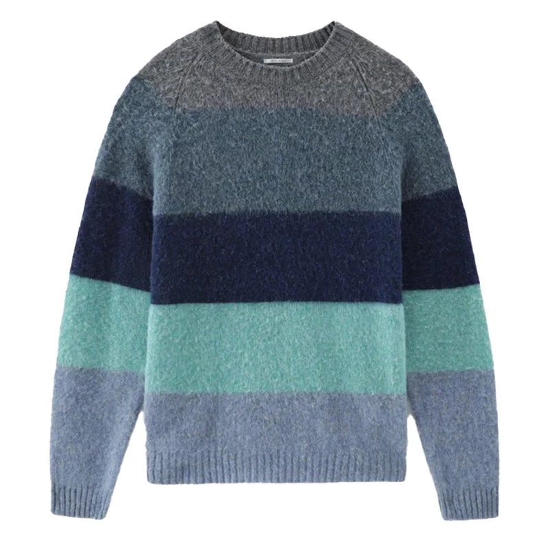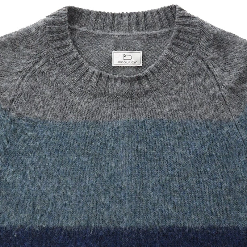 A nod to the excellent craftsmanship that Woolrich produces, the Woolrich Striped Crewneck Knit is an must have. Crafted from luxurious brushed virgin shetland wool, which has been knitted with a classic jersey stich and ribbed trims. A must have to elevate your wardrobe.
